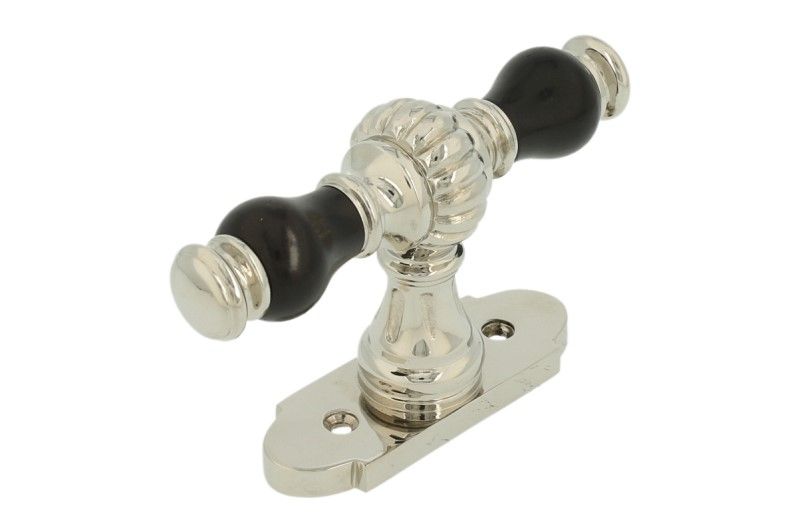 Fensterolive mit Rosette Messing vernickelt Ebenholz