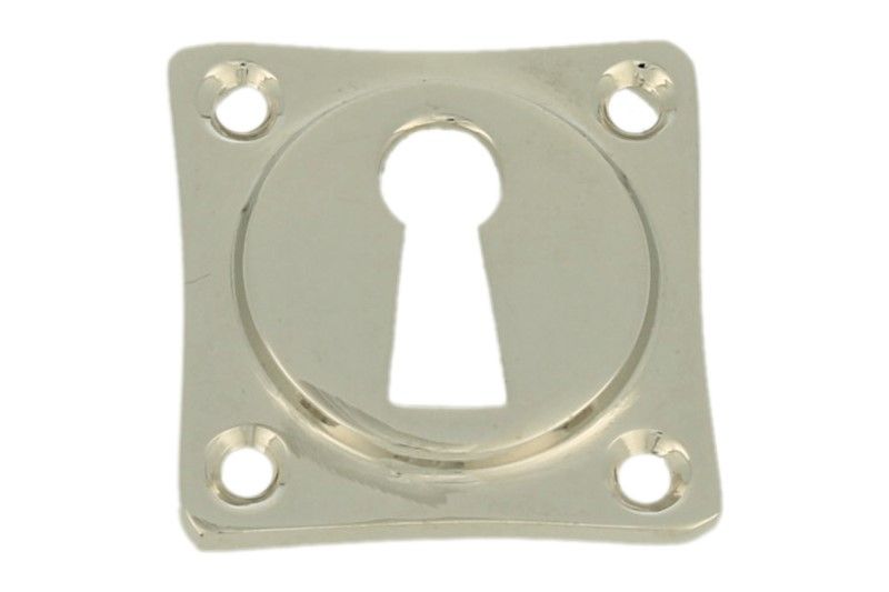 Schlüssel-Rosette Quadrat "Tonnen Design" Messing vernickelt